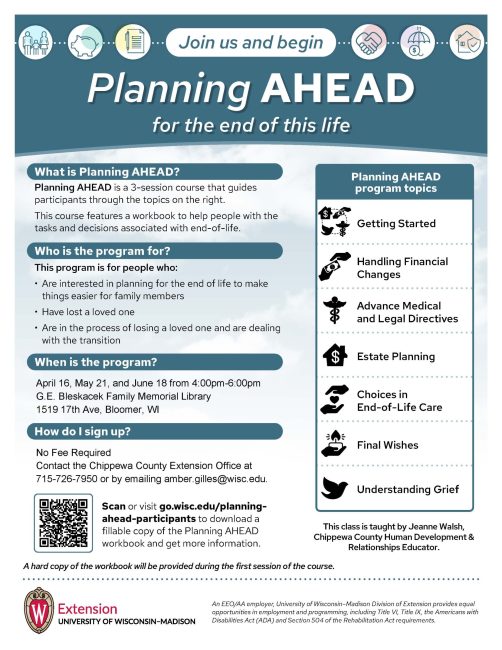 To register or learn more, contact the Chippewa County Extension Office at 715-726-7950 or email amber.gilles@wisc.edu.