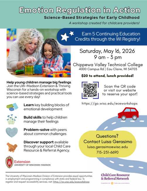 Your hosts are the University of Wisconsin Division of Extension and the Child Care Resource & Referral Network powered by Thriving Wisconsin.